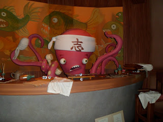 We spent quite a bit of time enjoying the Disney Animation displays. These were some cartoon pictures on a wheel that "moved" when the kids turned them. They were fascinated.
